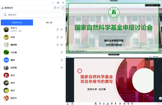 为提升bevitor伟德国际1946教师国家自然科学基金申报的命中率,做好2023年度国家自然科学基金申报工作,公司于2023年3月4日上午9点,通过腾讯会议召开了2023年度国家自然科学基金申报研讨会。中国科公司大学教授李纾和苏州大学教授冯文锋应邀参与,并进行经验分享。本次研讨会由心理学系主任尹述飞主持,教师梁沛、杨伟平、匡仪等人共同参与。