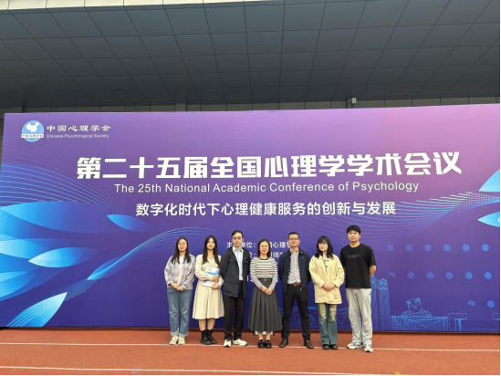 会议期间,公司心理学系教师吴鹏副教授、尹述飞副教授、杨伟平副教授、孙山博士带领14名硕士研究生参与本次会议。尹述飞副教授作题为《老年人短视频APP使用和自评健康的关系:主观社会支持的中介作用和媒介素养的调节作用》的专题报告。2022级心理学专业硕士研究生宋婉煜作题为《网名性别化感知对人际信任的影响:个体评价的中介作用》的口头报告、张晓晨作题为《愤怒情绪对恶意创造力的影响:身体姿势的作用》的口头报告,2021级心理健康教育专业硕士研究生刘珂菁作题为《情绪状态与求助者类型对网络利他行为意愿的影响》的口头报告,2022级心理健康教育专业硕士研究生王惠珍作题为《文本与emoji情绪一致性对个体情绪感知的影响》的口头报告。此外,周文欣、郑奂舟、裴沁雪、李明远四位同学在会议上作展贴报告。