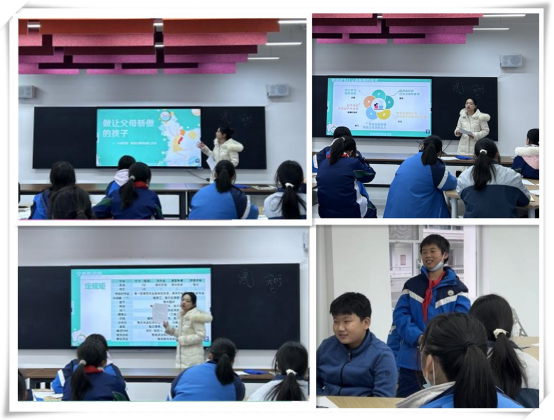 张雅琳女士从五个方面切入了讲座主题。首先,张女士以家长的角度,向同学们分享了家长眼中的孩子是怎么样的,并且解释了家长的一些行为所蕴含的对孩子的期望。其次,张女士结合自己对孩子的教育方式,分享了应该如何做父母骄傲的孩子,即要能够经常与父母进行交流,向父母表达自己的喜好,能够不断向着自己的爱好努力,及时提出父母的不足,一起进步等。再次,张女士转变身份,站在员工的角度分析了员工所期望的家长引导模式,结合家庭实际列举了一些自己的举措,引起了员工们的欢呼。从次,张女士还结合了“将军班”的班级特质,分析了“小班干”的责任。最后,张女士对自己的课程进行了总结,表达了对在座“小将军班”成员的赞赏,鼓励“小将军班”的成员积极地与父母进行沟通,在班级内为老师及同学分忧,做优秀的班级管理者。