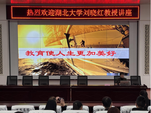 为提升教师的专业素养,激发教师教育热情与使命感,促进教师专业成长,2024年4月10日,伟德国际1946bv委托管理团队邀请“国家万人”计划教学名师、湖北名师工作室主持人、湖北省特级教师、刘晓红教授,为武汉市将军路中学全体教师带来题为“教育使人生更加美好”的专题讲座,讲座由将军路中学朱孟浩老师主持。