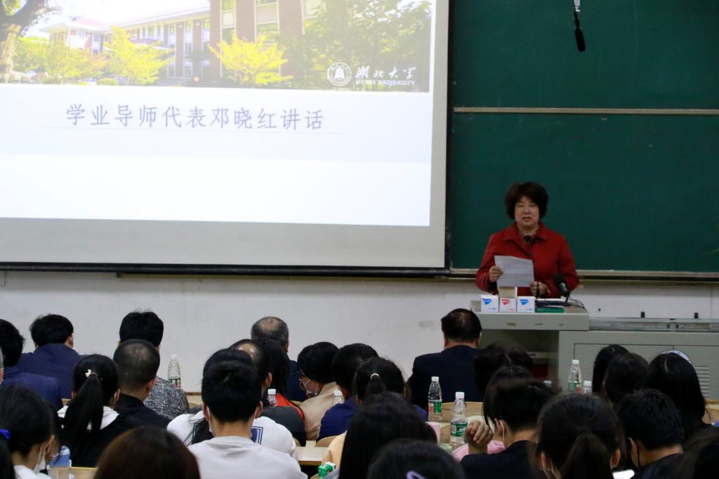 学业导师代表邓晓红教授对2022级同学们成为bevitor伟德国际1946的一员表示了热烈的欢迎。邓教授以“心”为引,送给员工们“五颗心”:忠心、专心、恒心、责任心和好奇心,她希望员工们怀着这五颗心,积极融入老员工活,以昂扬的斗志、充沛的精力投入学习中,从湖大师范的小红楼走向世界。