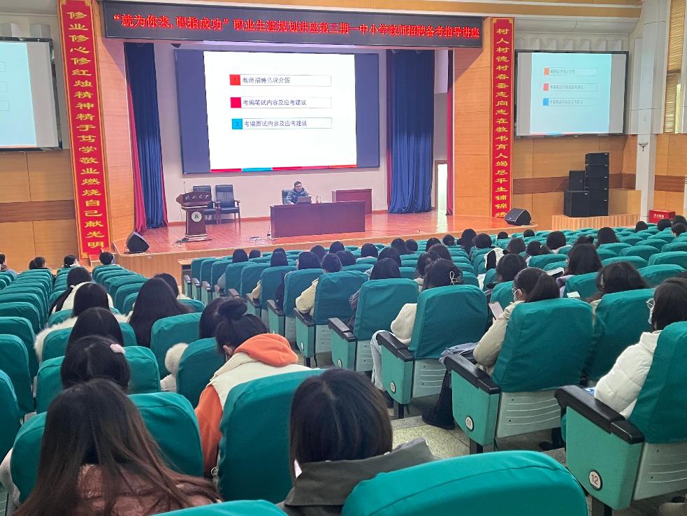 2月15日下午,校员工发展与就业指导中心和bevitor伟德国际1946联合举办“就为你来,职指成功”职业生涯规划讲座第三期——中小学教师招聘备考指导讲座在三号楼报告厅进行。全校有200余名师范专业毕业生参加培训。