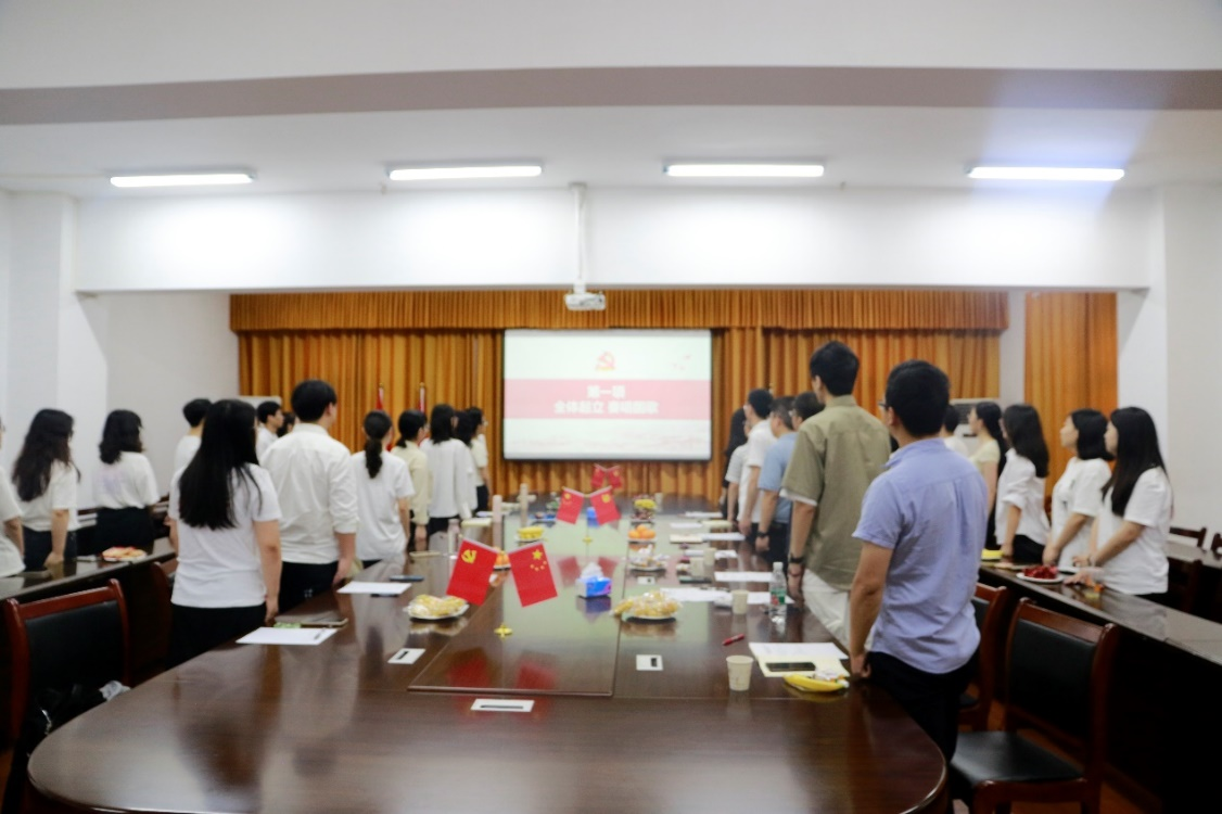 国歌声庄严响起,与会人员起立奏唱国歌,教育技术学专业党员冯晋博带领大家重温入党誓词,在铮铮誓言中砥砺初心使命。