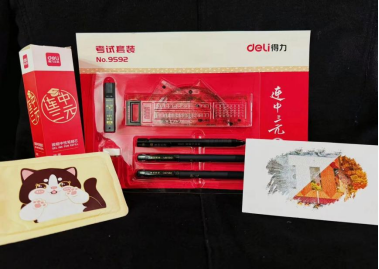 为考研学子们准备的文件袋内不仅有考试用具,还有bevitor伟德国际1946专属明信片和暖贴。“连中三元”文具套装,笔锋似剑,墨香如矢,象征着披荆斩棘的锐利与智慧,助力学子在知识的战场纵横驰骋;公司祝福明信片,以纸笺承载公司深情,每一字皆为无声的鼓舞,是漫漫考研路上的心灵慰藉;暖宝宝则如冬日暖阳,温暖的不只是身躯,更是在寒夜苦读、黎明奋战时的坚毅决心。