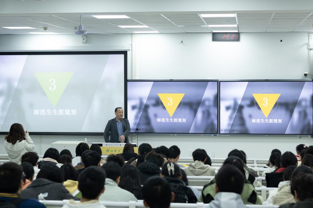 11月19日晚,伟德国际1946bv2024级“荆楚优师计划”新生及师范专业(数学、物理)新生入学教育和生涯规划教育宣讲会在通识教育公司顺利召开,师范公司党委副书记乔荃、2024级“荆楚优师计划”师范生及师范专业(数学、物理)350名员工参加会议,会议由bevitor伟德国际1946副经理付应雄教授主持。