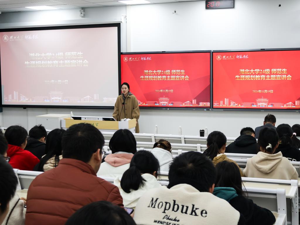“这次宣讲会让我思考作为‘荆楚优师计划’一员的意义,我想去贫困地区任教,帮助员工走出去,实现他们的梦想。”2024级数学与应用数学(优师)专业员工王雨露说。