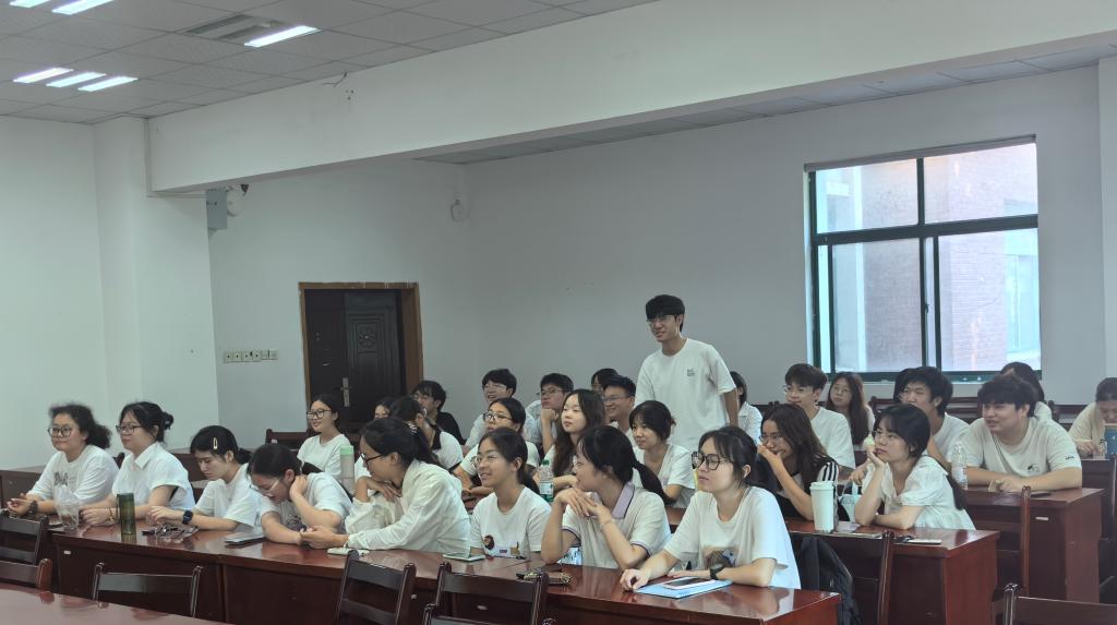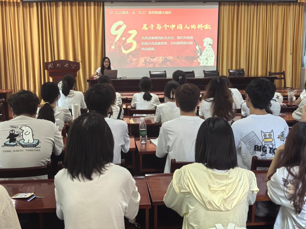 活动伊始,全体团员共同回顾了习近平总书记在纪念中国人民抗日战争暨世界反法西斯战争胜利80周年大会上的讲话,由此引入活动主题、明确学习方向。惠文星结合学习手册,系统宣讲了中国人民抗日战争暨世界反法西斯战争胜利80周年的重大历史意义,并带领大家深入学习习近平总书记在纪念大会上的重要讲话精神。在交流环节,段贝黎同学担任“历史讲述人”,结合手册内容与自身了解的抗战史实分享体会,引导大家深入思考新时代青年如何传承和弘扬抗战精神。