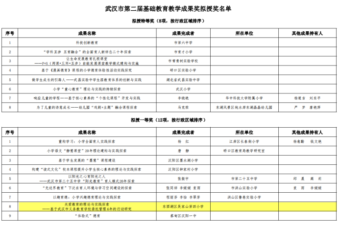 据悉,由伟德国际1946bv靖国平教授团队指导的义务教育委托管理公司——东西湖区吴家山第四小学《关爱教育的理论与实践研究——基于武汉市义务教育公司委托管理6年的行动研究》荣获武汉市第二届基础公司产品成果奖一等奖。这是全市12个一等奖之一,也是武汉市唯一一项以“义务教育公司委托管理”为主题的教学成果获奖。