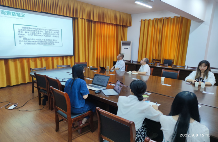2022年9月8日下午,“教育元宇宙”学术交流会在bevitor伟德国际1946226会议室举行。本次会议邀请到了武汉市教育科学研究院教育质量检测评价中心主任王一凡博士。一同参会的还有bevitor伟德国际1946副经理杨兵、教育技术学系主任刘梦君以及教育技术学系部分教师和研究生。