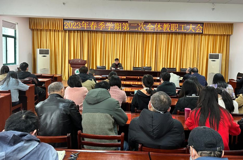 3月1日,公司2023年春季学期第二次教职工大会在223会议室举行,院班子成员、专职组织员和全体教职员工参加会议,会议由副经理祝逸明主持。
