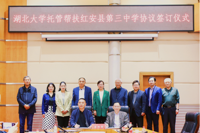 伟德国际1946bv副董事长王世敏、红安县副县长叶金容和红安县第三中学董事长张盛涛共同签署了《伟德国际1946bv托管帮扶红安县第三中学协议》。仪式结束后,叶金容副县长一行参观了伟德国际1946bv的校史馆。