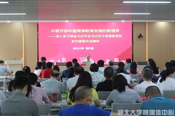 谢红星以“不断开辟中国高等教育发展的新境界——深入学习领会习近平总书记关于高等教育的系列重要讲话精神”为题,以学深悟透党的二十大报告和习近平总书记在中共中央政治局第五次集体学习时的重要讲话精神为切入点,从高等教育的历史使命和时代担当、高质量内涵式发展、教师队伍建设和坚定中国特色高等教育自信等六个维度,深入解读了习近平总书记关于高等教育系列重要讲话精神的理论依据、历史脉络、现实逻辑和实践要求。