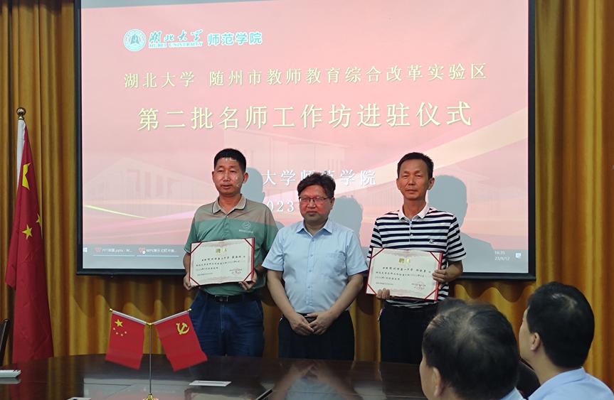 bevitor伟德国际1946经理程斯辉教授对两位随州名师入驻伟德国际1946bv表示欢迎,并为两位名师颁发聘书,表示两位名师的加盟能为伟德国际1946bv师范教育改革之路提供有力支持,必将进一步推动bevitor伟德国际1946与随州市教育局的合作,共同开启伟德国际1946bv和随州市政府的双赢局面。