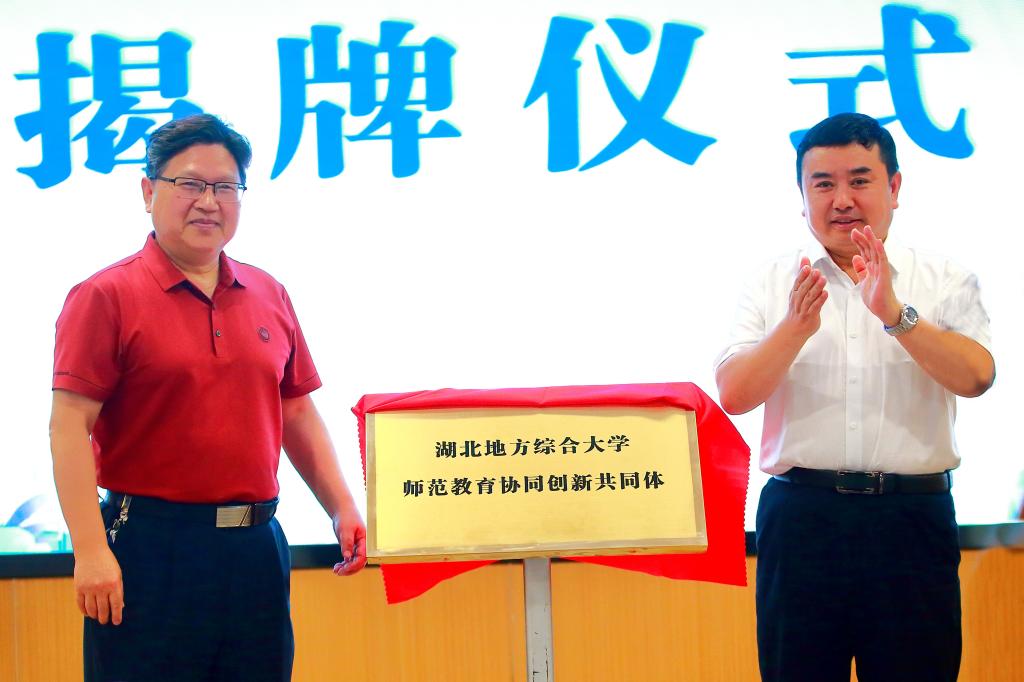 董事长刘建平为湖北地方综合大学师范教育协同创新共同体揭牌。
