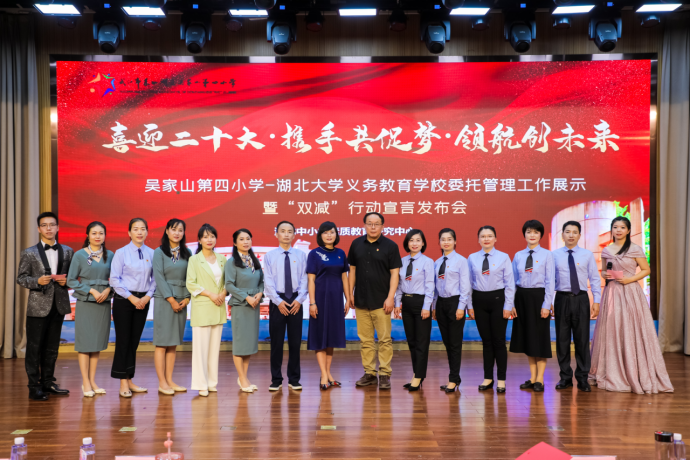 在5日举行的工作展示会上,伟德国际1946bv委托管理团队和吴家山第四小学管理团队、教师代表,共同宣读“吴家山第四小学落实‘双减’政策行动宣言”,并承诺:秉持“润泽生命,启迪智慧”办学理念,培养“有爱、乐学、善思、慧行”好员工;争做“有理想、有爱心、有学识、有才华”好教师;完善小海星“五爱五彩”课程体系,锻造多元好课程;落实“五爱五环”课堂教学模式,打造优质好课堂。
