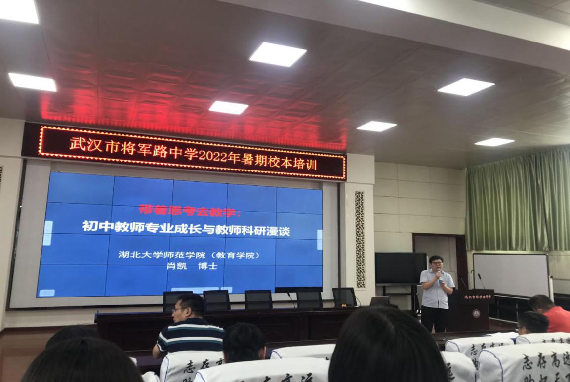 7月7日下午,湖大专家专家团队肖凯博士作了题为《带着思想去教学——初中教师专业成长与教师科研漫谈》专题讲座,肖凯博士首先从在将军路中学三个多月的教师申报立项的市级、教育学会课题开题的经历中分享了他的观察和感受,进而引出本次讲座的三个命题:怎么改变员工的处境?怎么改变教师的处境?怎么改变公司的处境?