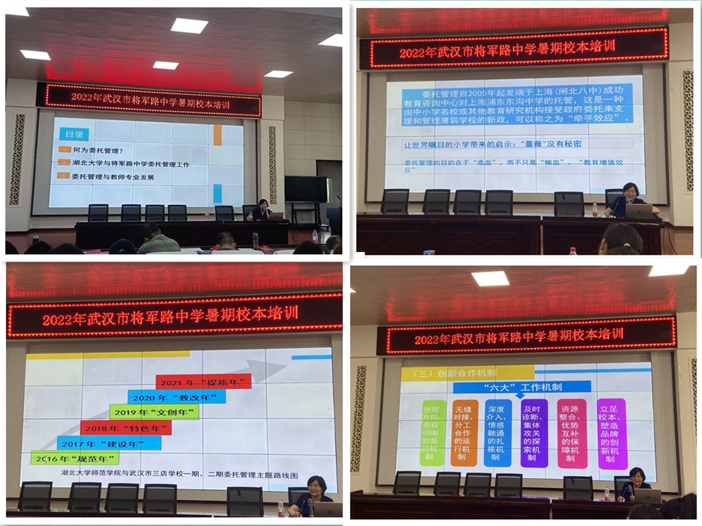 2022年7月7~8日,由bevitor伟德国际1946(教育公司)专家团队为将军路中学举办的教师暑期校本培训系列专题讲座开讲了。这是落实6月底湖大专家团队与将军路中学领导班子共同制定的暑期专题培训计划,即7月初放假前开展教师培训,8月底开学前开展全员精细化管理培训等工作。