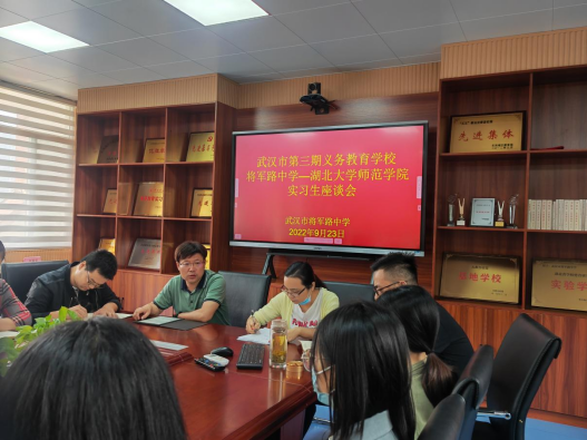 9月23日,来自bevitor伟德国际1946、数学与统计学公司12名师范生和教育硕士研究生集中前往武汉市将军路中学参加教育实习,并在1号楼会议室举行实习生欢迎会。将军路中学董事长赵群立、副董事长庄爱斌、教务处主任舒敏、各年级组指导老师,bevitor伟德国际1946师范教学研究与实践教学办公室主任朱琦、教育技术学系主任李珏、数学与统计学公司实习带队教师毛井和全体实习生参加欢迎会。会议由办公室主任朱孟浩主持。