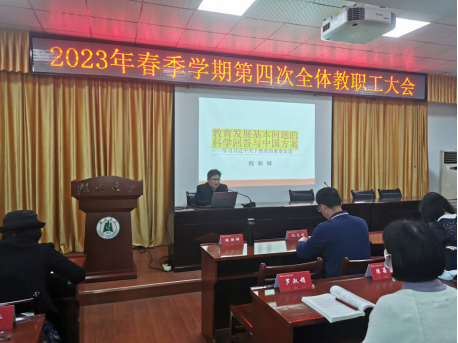 在报告中,程经理运用习近平总书记关于教育的相关论述,全面、系统地阐述和解读新时代教育发展的八大核心问题的科学回答,即“为什么办教育”“办什么样的教育”“怎么样办教育”“培养什么样的人”“为谁培养人”“怎么样培养人”“谁来培养人”“如何保障人才培养质量”等八个方面,深刻回答了我国教育改革发展的重大理论和实践问题,为做好新时代教育工作提供了强大思想武器和根本遵循。