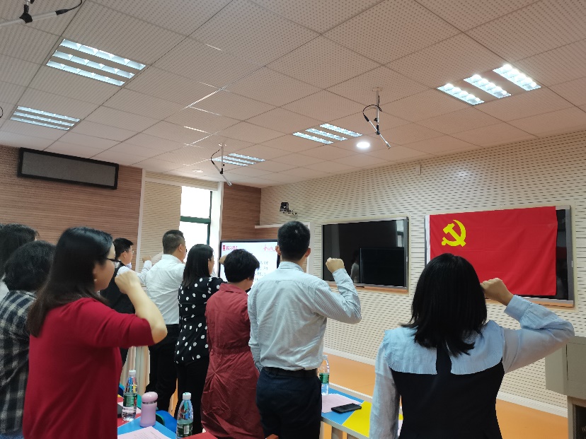 活动开始时全体党员同志奏唱国歌,并在巩致汝同志的带领下重温了入党誓词。随后朱琦老师汇报了支部党费自查结果。