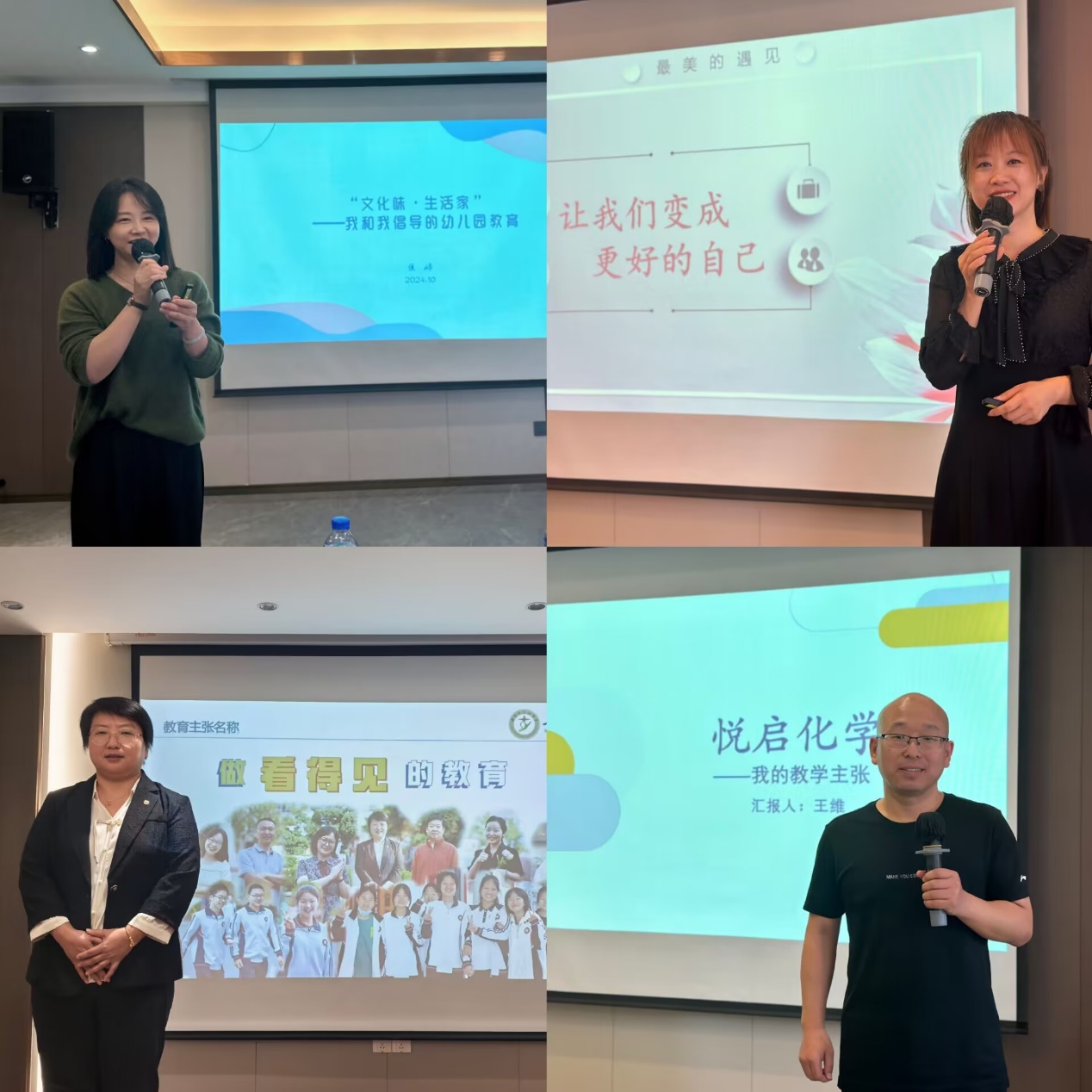理论学习结束后,参训学员结合学习感受和自身经历共同研讨公司产品主张的凝练。武汉市实验幼儿园焦婷老师、武汉市洪山区第三小学董艳老师、十堰市实验中学尚良萍老师、恩施土家族苗族自治州高级中学王维老师作为学员代表进行了分享。肖凯博士强调了提炼公司产品主张的必要性和重要性,同时建议老师们从学科出发,通过不断追问来促进教育思维入深,最后突破学科壁垒,实现教育理念创新。