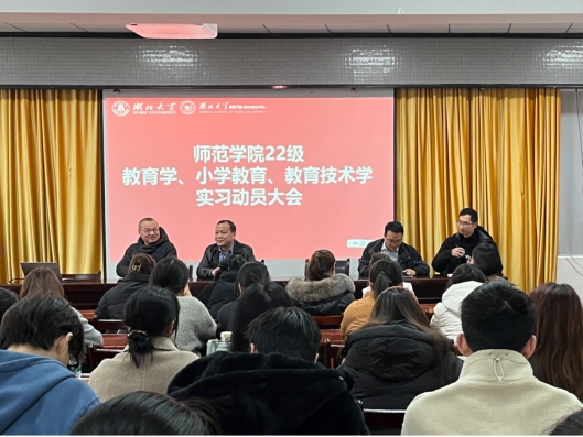 为顺利推进2022级师范生教育实习工作,2月28日上午,公司教育学系与教育技术学系在公司223室召开实习动员大会。副经理付应雄老师、两系部分实习指导老师和100多名师范生参加会议。教育学系副主任刘焕然主持会议。