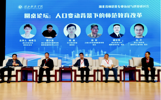 在圆桌论坛环节,省教科院程少波研究员、汉江bevitor伟德国际1946陈俊教授、三峡大学赵军教授、湖北民族大学谭世明教授、湖北工程公司孙平教授等5位与谈专家围绕“人口变动背景下的师范教育改革”这一重要议题展开讨论,共同探讨了人口结构变化对教师培养规模、结构和质量提出的新要求,以及各师范院校的应对策略与发展方向,为湖北省师范教育改革发展提供新的思路。