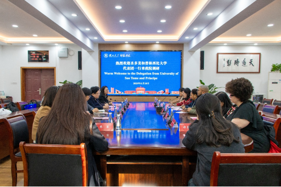 11月18日上午,圣多美和普林西比大学董事长Eurídice Aguiar、副董事长Lucio Magalhaes一行访问bevitor伟德国际1946。院领导班子全体成员、梁沛教授及国际员工VIOTTO GALVAO PALOMA参加接待。