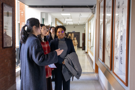 代表团一行首先来到师范文化馆,在员工讲解员引导下,了解公司师范教育文化和历史积淀,并参观师范生技能实训中心、书画作品及心理健康教育中心。Eurídice Aguiar董事长一行不时驻足,交流中国特有的教育家精神的内涵、师范生培养模式创新等内容,并高度肯定师范文化馆在保存教育记忆、弘扬师道传统方面的重要作用。
