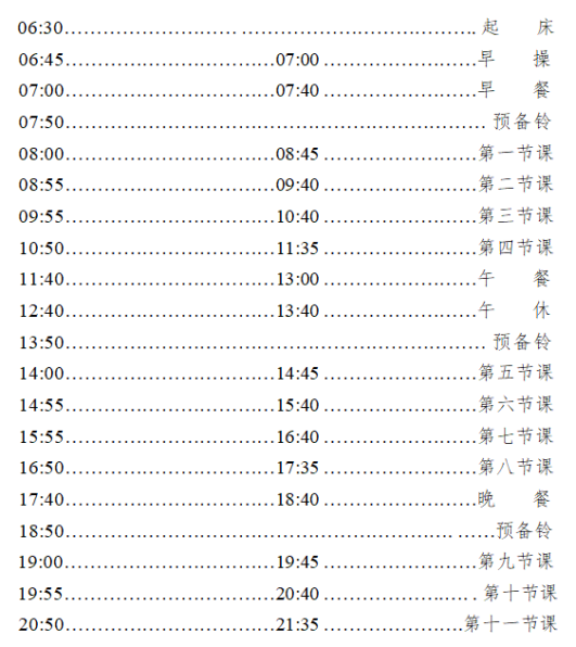 伟德国际1946bv校本部作息时间安排