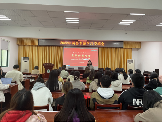 教工第三党支部宣传委员邓明静从2022年两会概况、教育热点议题、心理健康相关提案内容等方面解读了2022年两会精神及与三个支部学科背景相关的专业热点。