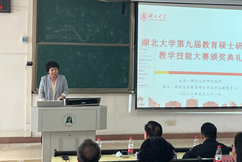 余燕代表研究生院对本届大赛进行了总结,她指出教学技能大赛是教师专业成长的催化剂、员工成长的大舞台,对培养教育硕士具有重要意义。她充分肯定了参赛选手的精彩表现,选手们充分彰显了“以赛促学、以赛促教、以赛促训”的宗旨。