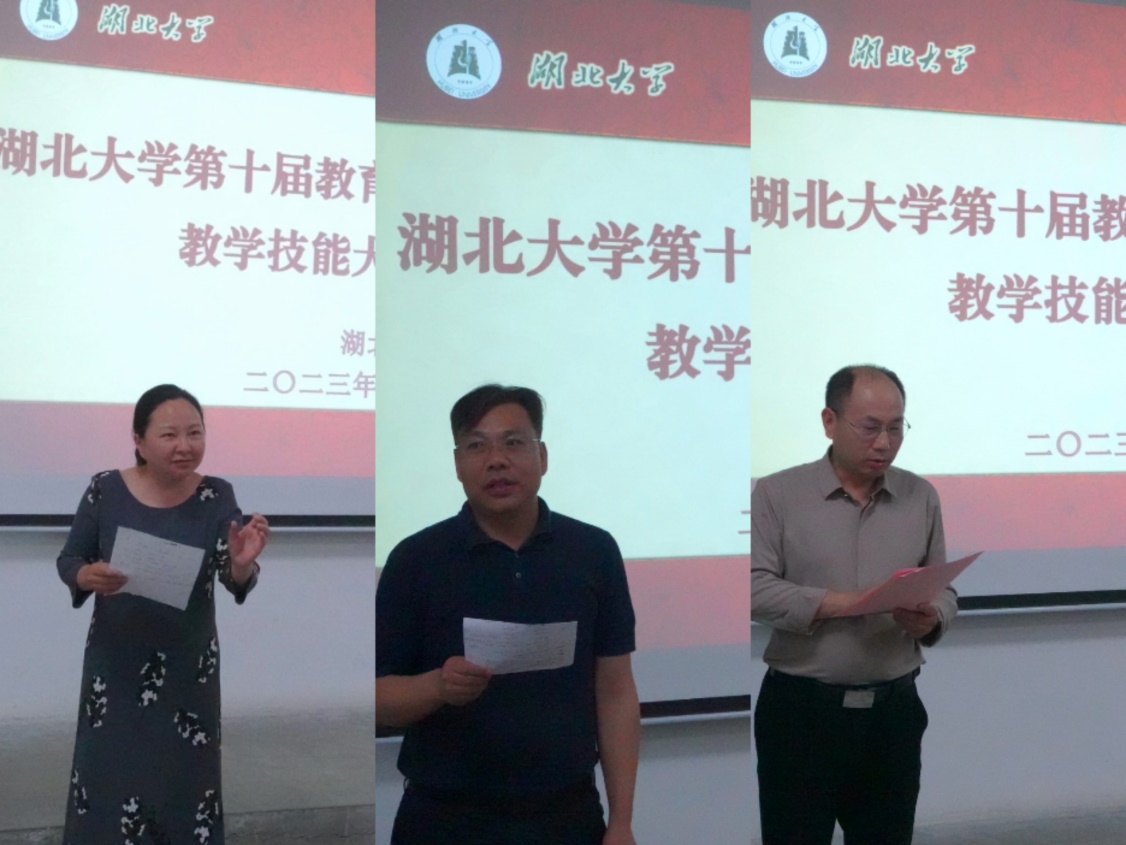 各评委老师对此次开展的教育硕士研究生教学技能大赛给予了肯定与支持。武汉实验小学徐莉老师从教学活动的记忆、理解、应用、分析、评价和创造六方面进行总结,建议选手们要提高对事实性、概念性、程序性和元认知知识的理解和应用,提出迁移运用、量规设计等教育热点;武汉市经开区第三中学肖文记董事长从“导、学、得、评”的多元角度进行分析,告诫选手们教学并不是简单的线性关系,并对参赛选手的状态、表达和过程给予表扬,对板书、学情分析、新课标解读、教学过程衔接等方面给出了建议。