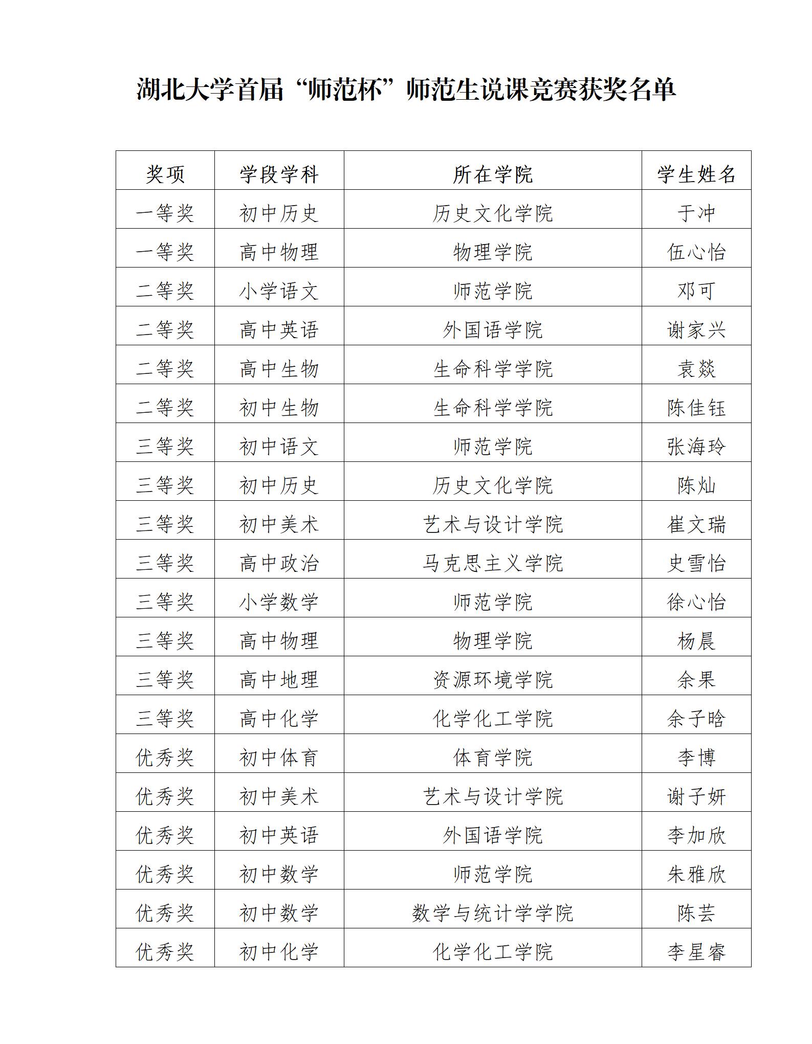伟德国际1946bv首届“师范杯”师范生说课竞赛获奖名单